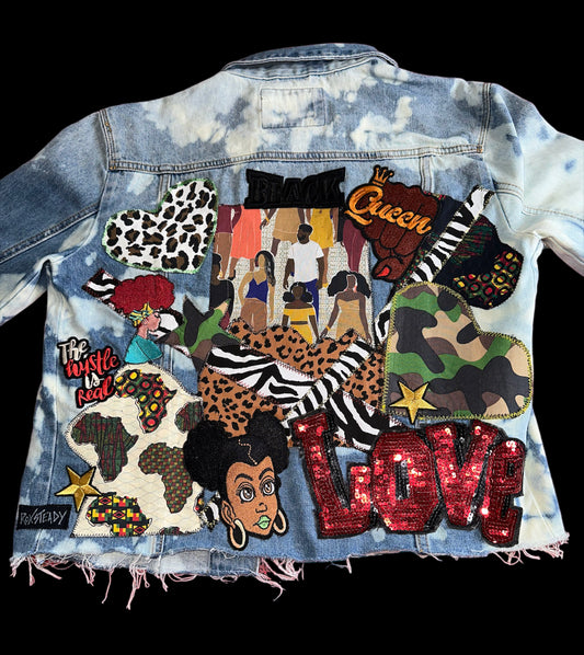 Customized “Queen” Reverse Tie Dye Denim Jacket with Stitched Patchwork